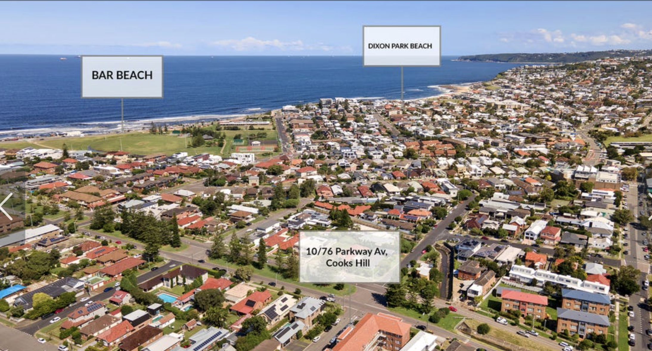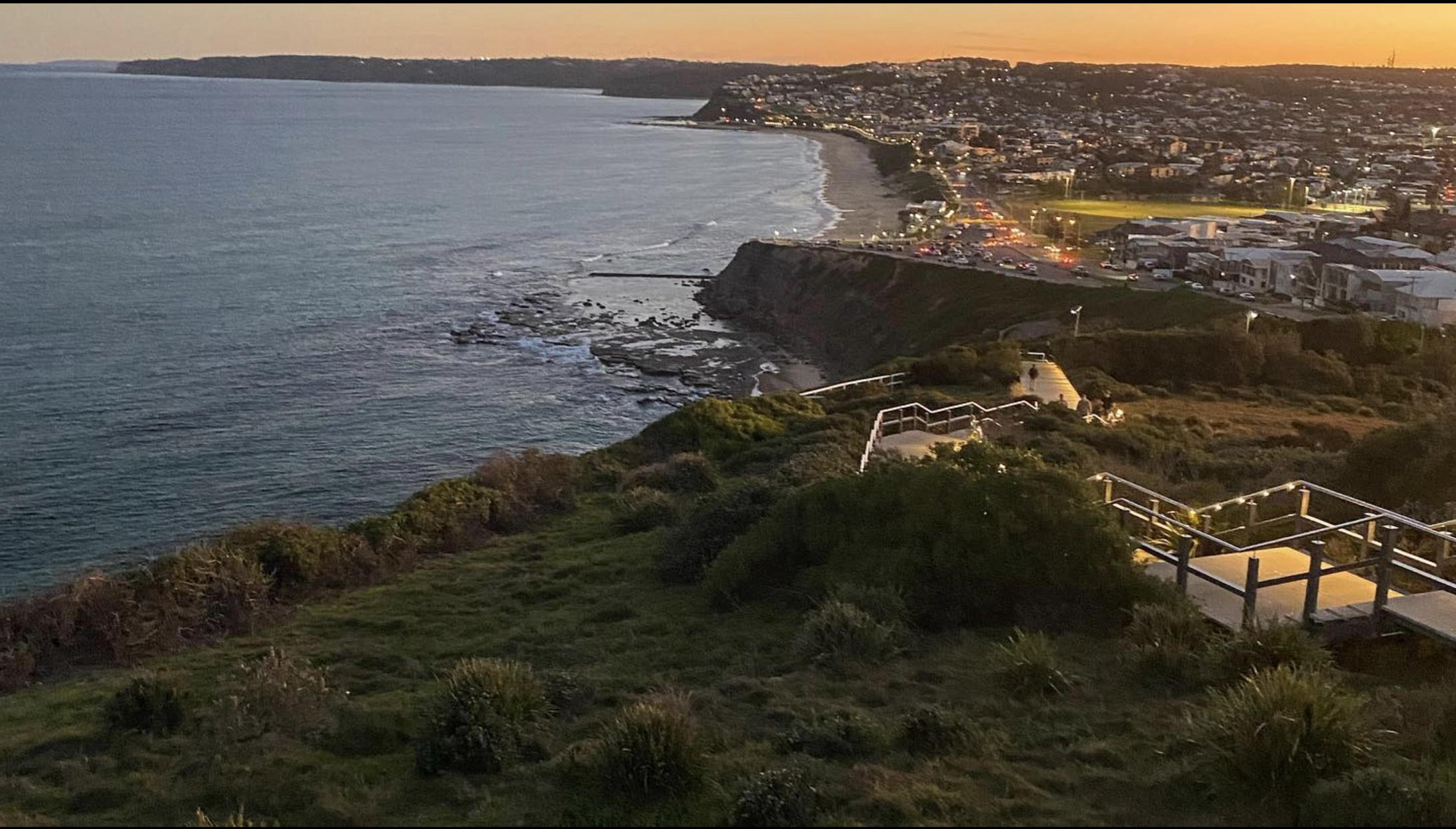 Locality shot – ANZAC Walk is 10 minutes stroll away from unit – looking to Bar Beach at sundown
