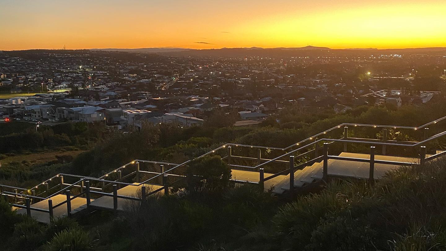 Locality shot – ANZAC Walk is 10 minutes stroll away from unit – Looking west to Mt Sugarloaf and ranges at sundown