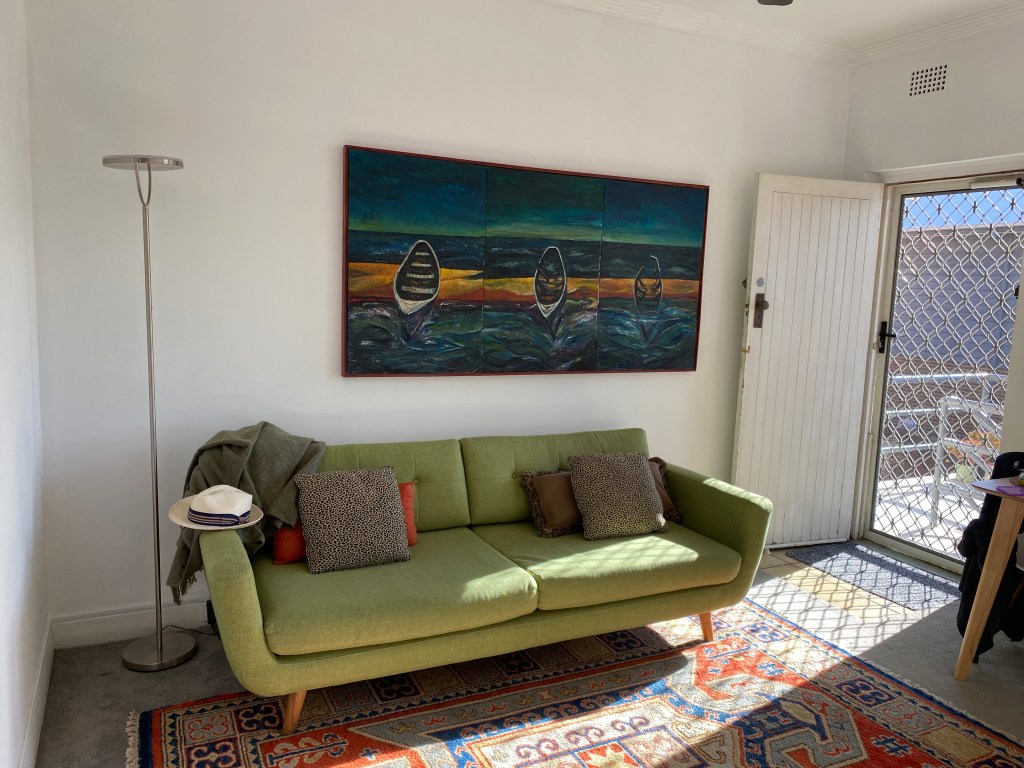 – Bright lounge room with new gas heating, neutral décor and adjoining balcony/sunroom – full leather lounge; Huge main bedroom with King bed and built in wardrobe; second bedroom with two long single beds with built in wardrobe; full secure with highest quality lockable shutters.