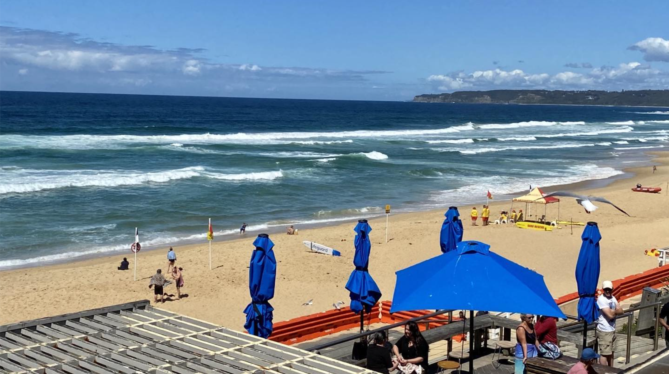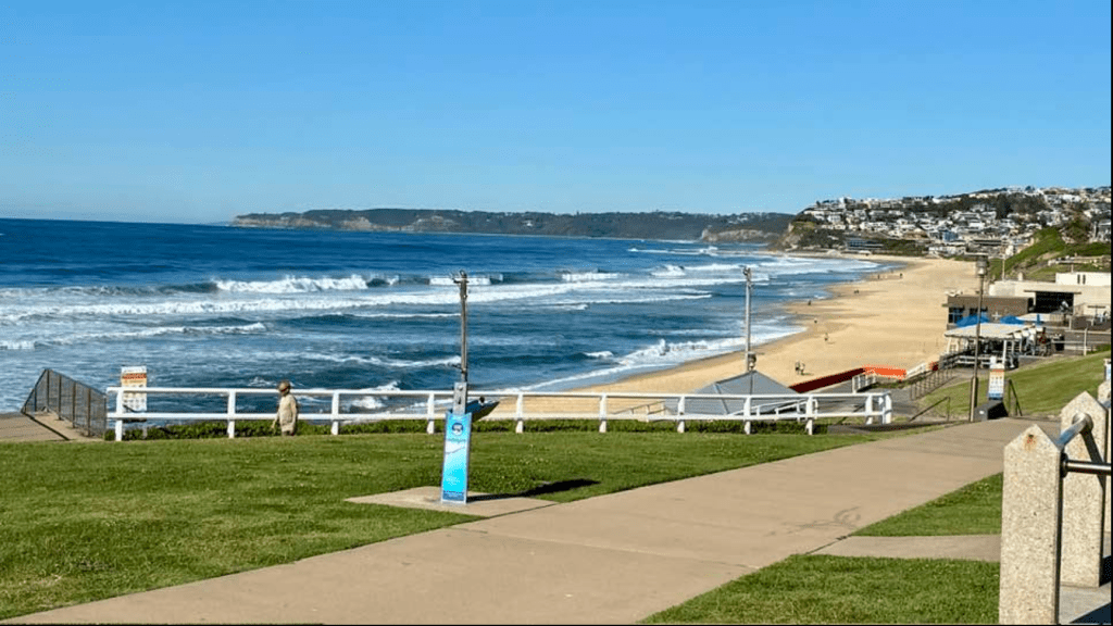 Bar Beach – surf lifeguards on duty patrolling 365 days a year, Swell Cafe open 6am til early evening each day, 600 metre walk to beach